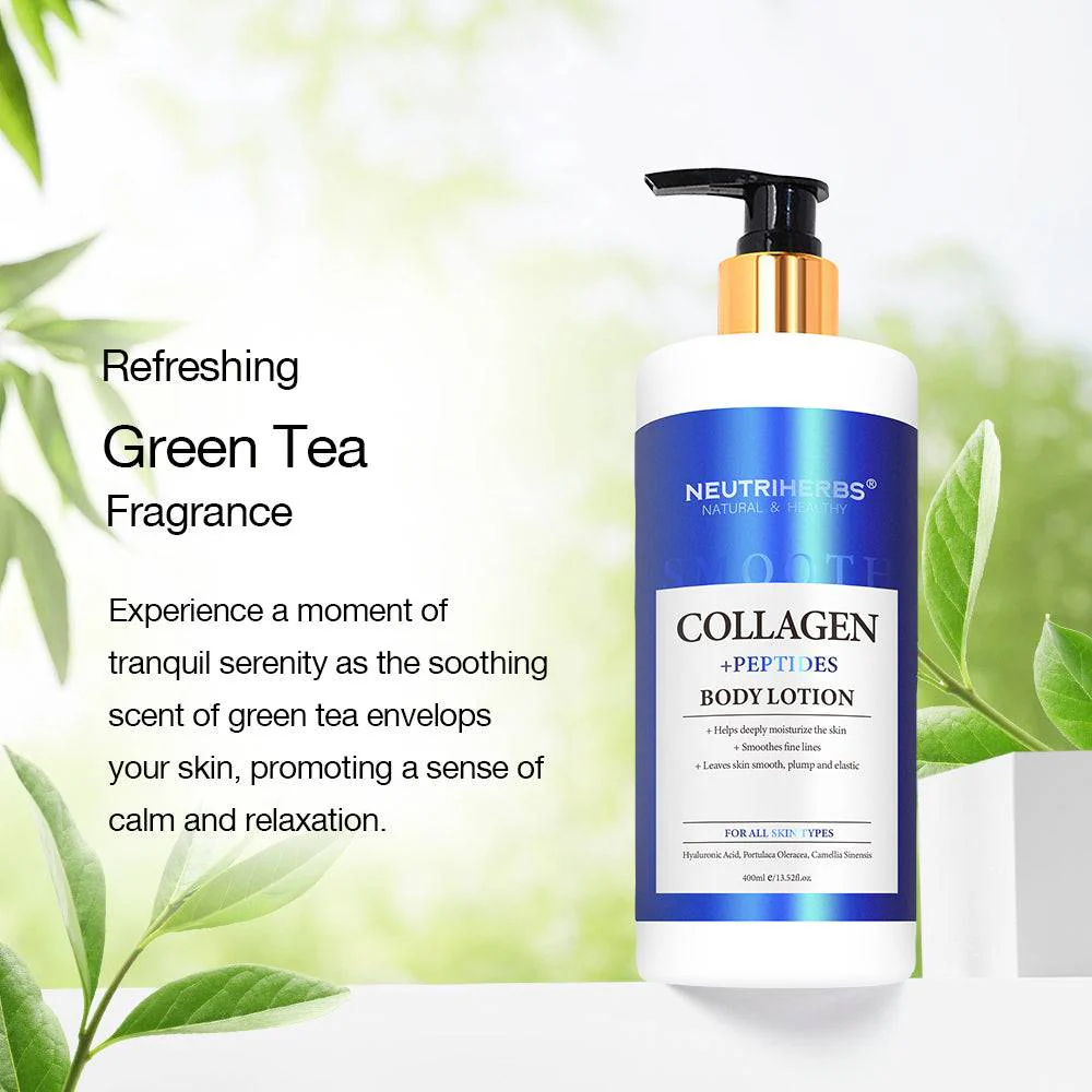 Neutriherbs Collagen body lotion with Collagen, Peptides, and Hyaluronic Acid. Naturally rich in amino acids and peptides, collagen provides nutrients to the skin for an optimally healthy-looking, hydrated look.
